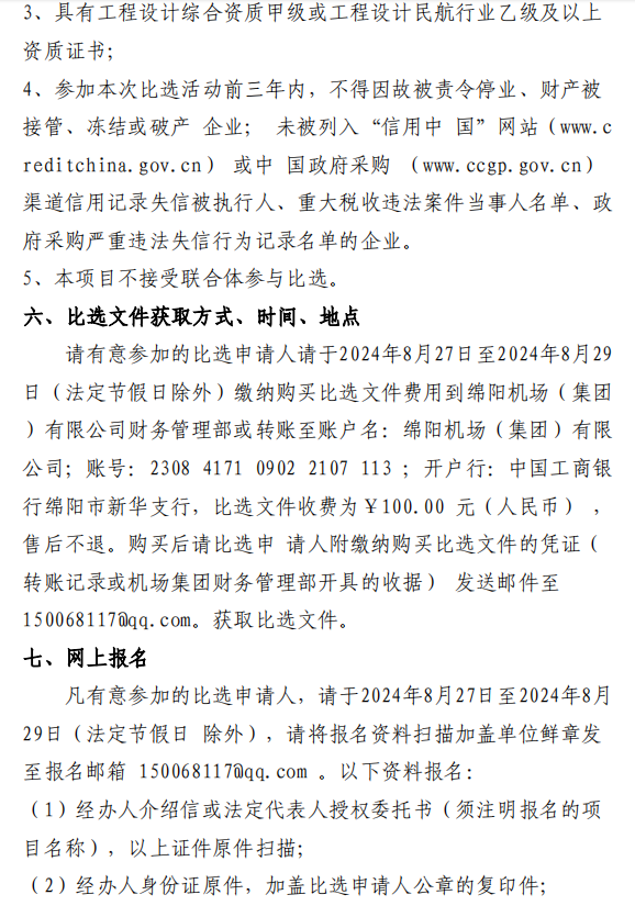 綿陽機場 T1、T2 航站樓連接通道改造項目設計單位(第二次)比選公告