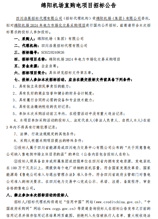 綿陽機場直購電項目招標公告